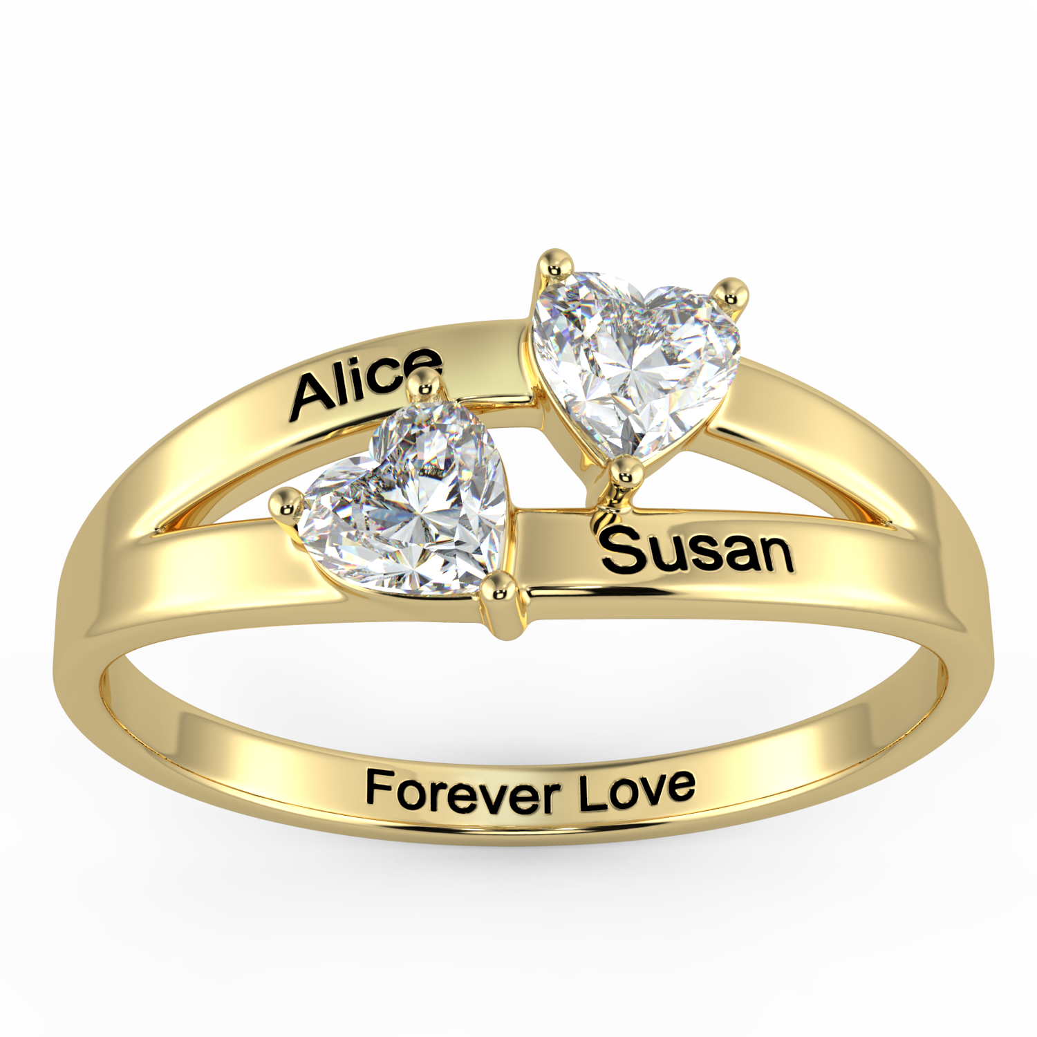 10k Yellow Gold Couples Double Heart Name And Birthstone Ring