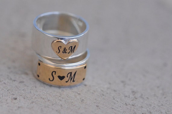14k Solid Gold Ring Sterling Silver Couple Heart Ring Personalized Ring Couple Ring Wedding Band Custom Wedding Band Christmas Gift