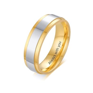 Gold Plated Engraved Couple Wedding Rings Titanium