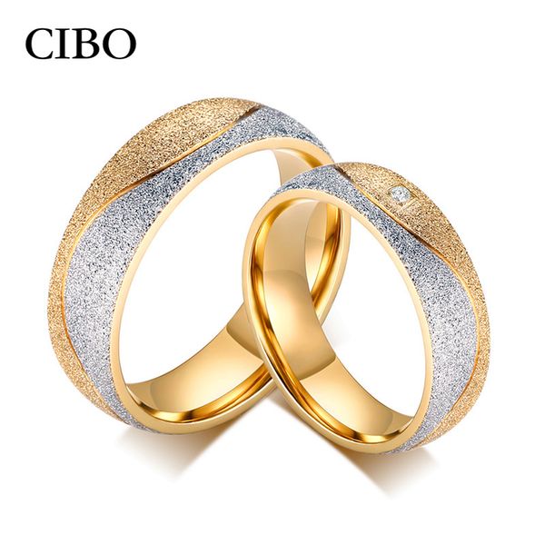 2019 Couple Engagement Ring For Women Men Sand Blasted Gold Color Stainless Steel Cz Wedding Rings Personalized Rings Woman Jewelry From Geraldgreen