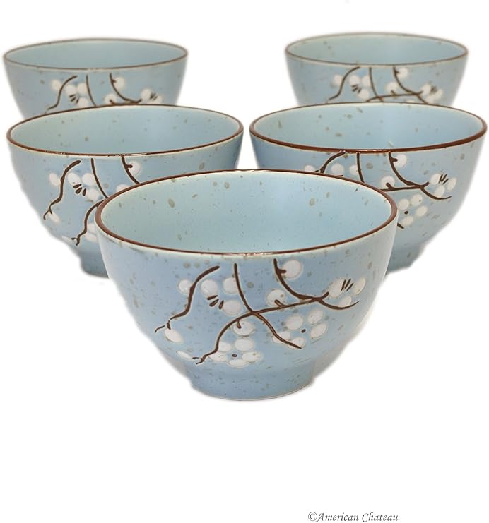 Amazon Com Set 5 Japanese Stoneware 10oz Asian Embossed Cherry