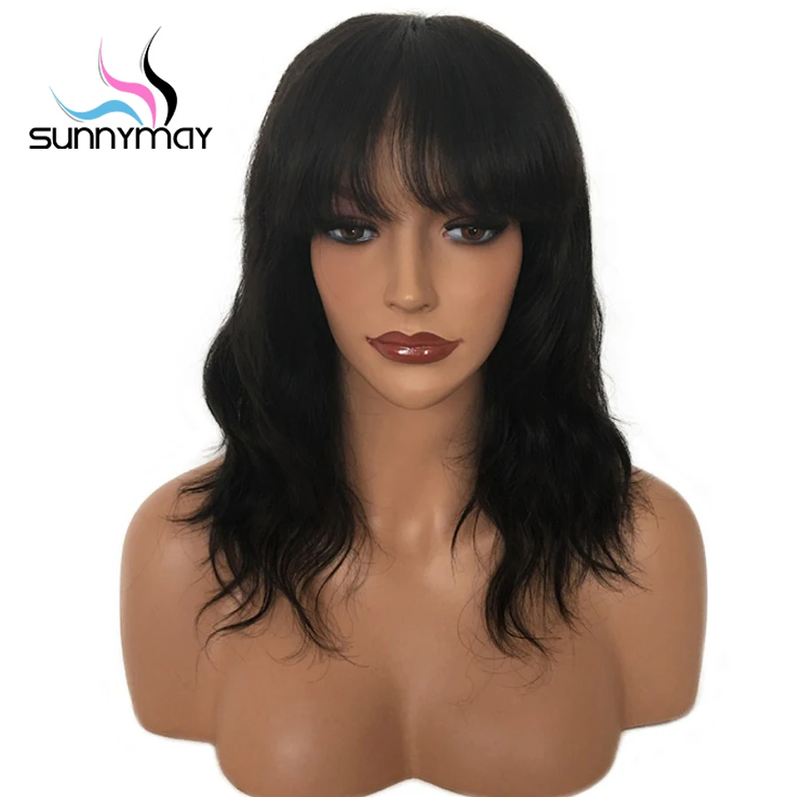 Sunnymay Short Glueless Lace Front Human Hair Wigs With Bangs Bleached Knots 130% Remy Wavy Brazilian Wigs For Black Women