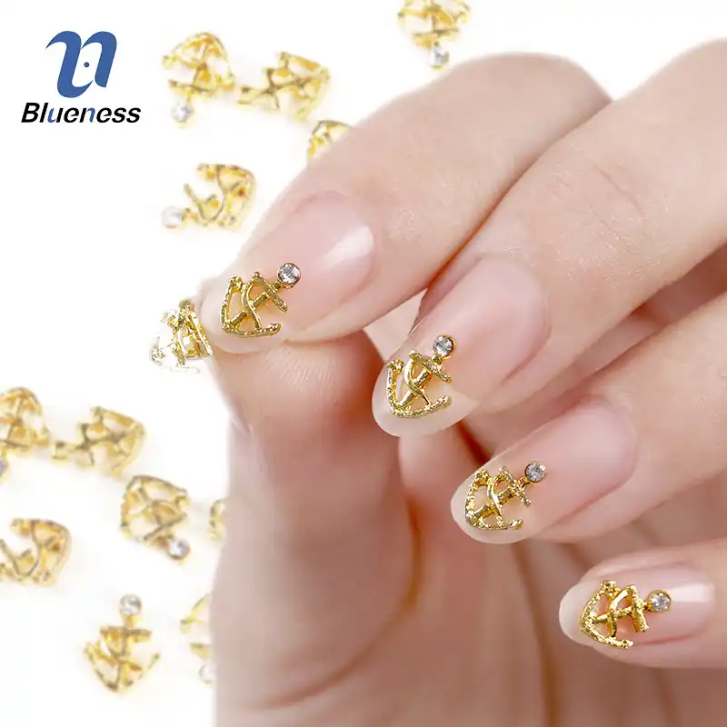 10pc Golden Alloy Glitter 3d Nail Art Anchor Decorations With Rhinestones 3d Nail Charms Jewelry On Nails Salon Supplies Tn666