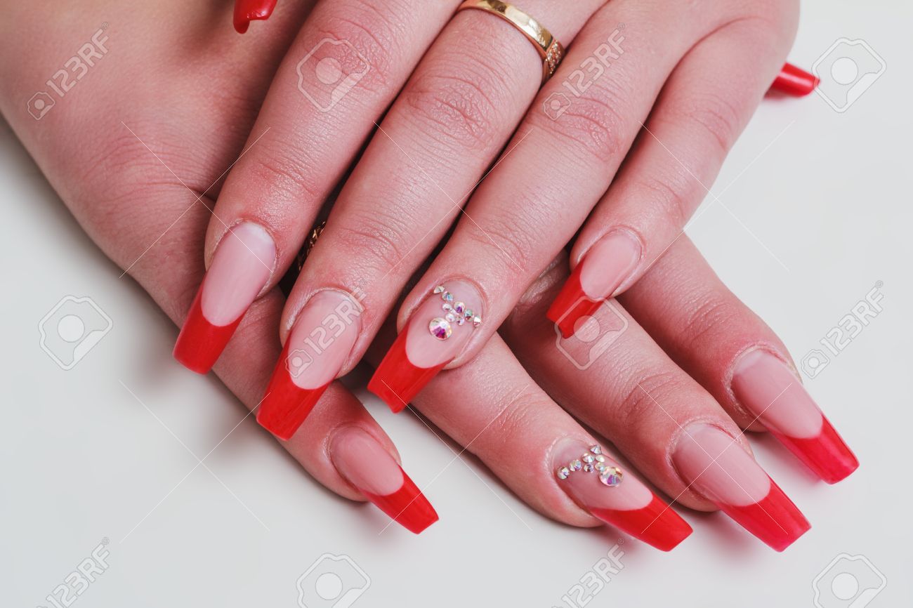 Red French Nail Art Rhinestones On Stock Photo Edit Now