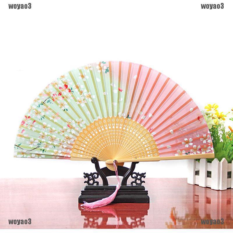 Vintage Bamboo Hand Fans Cherry Blossom Folding Summer Girls