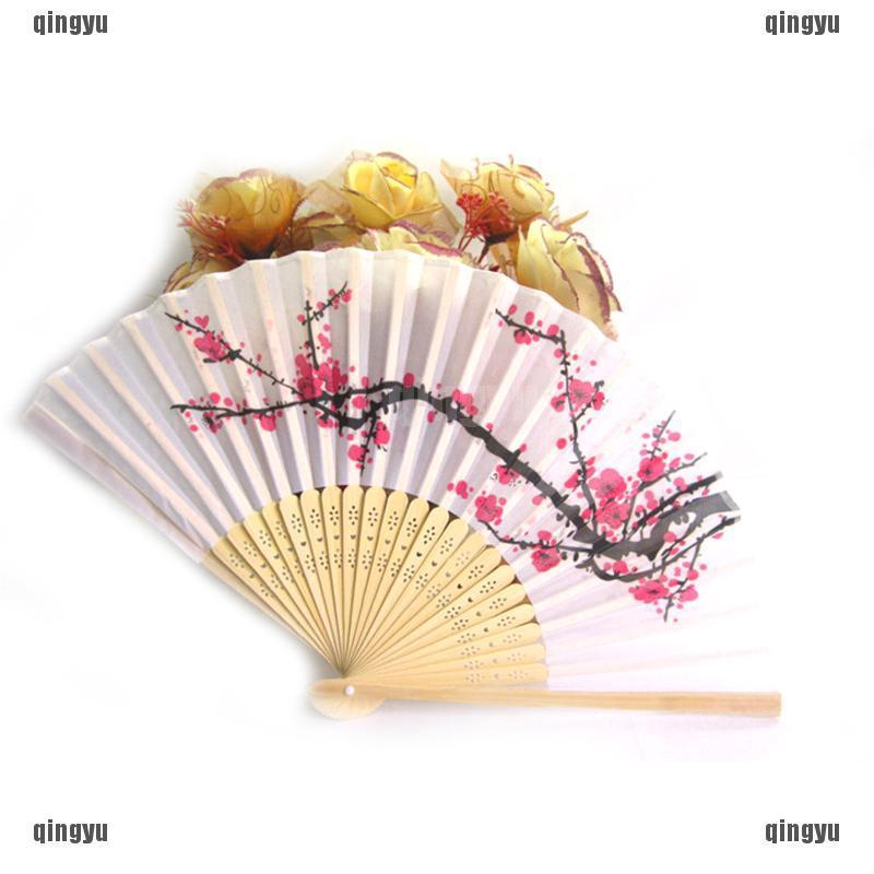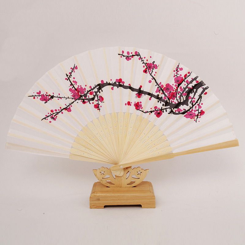 Plum Blossom Wedding Hand Fan Cherry Blossom Silk Bamboo Fan