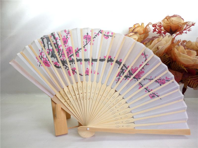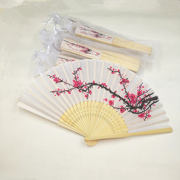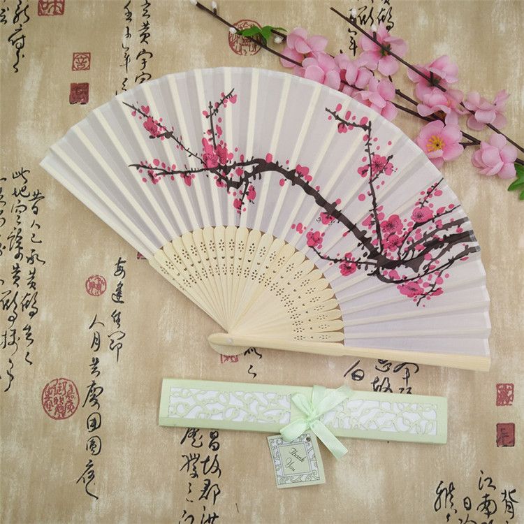 Cherry Blossom Silk Bamboo Craft Fan Wedding Favor Plum Blossom